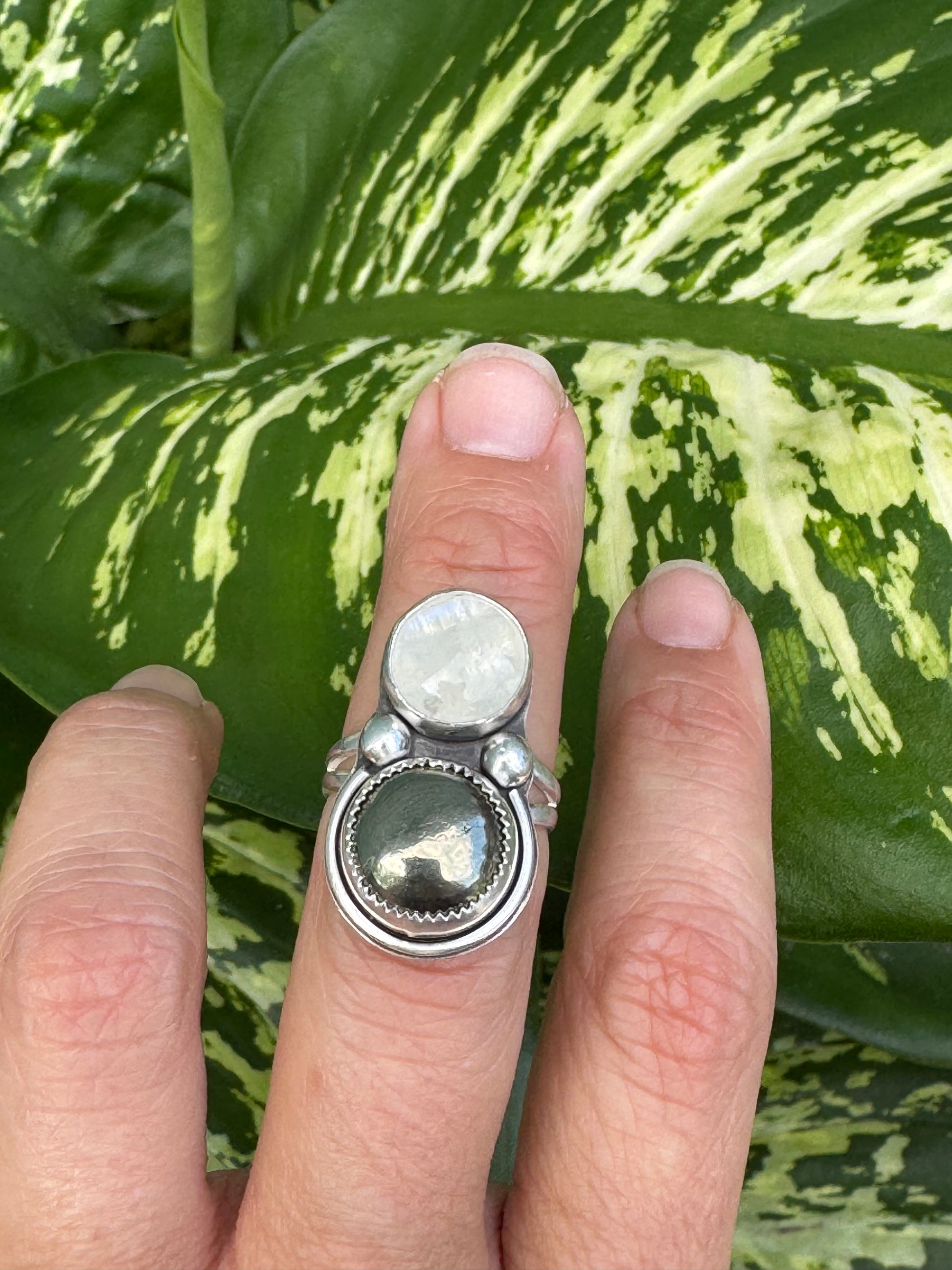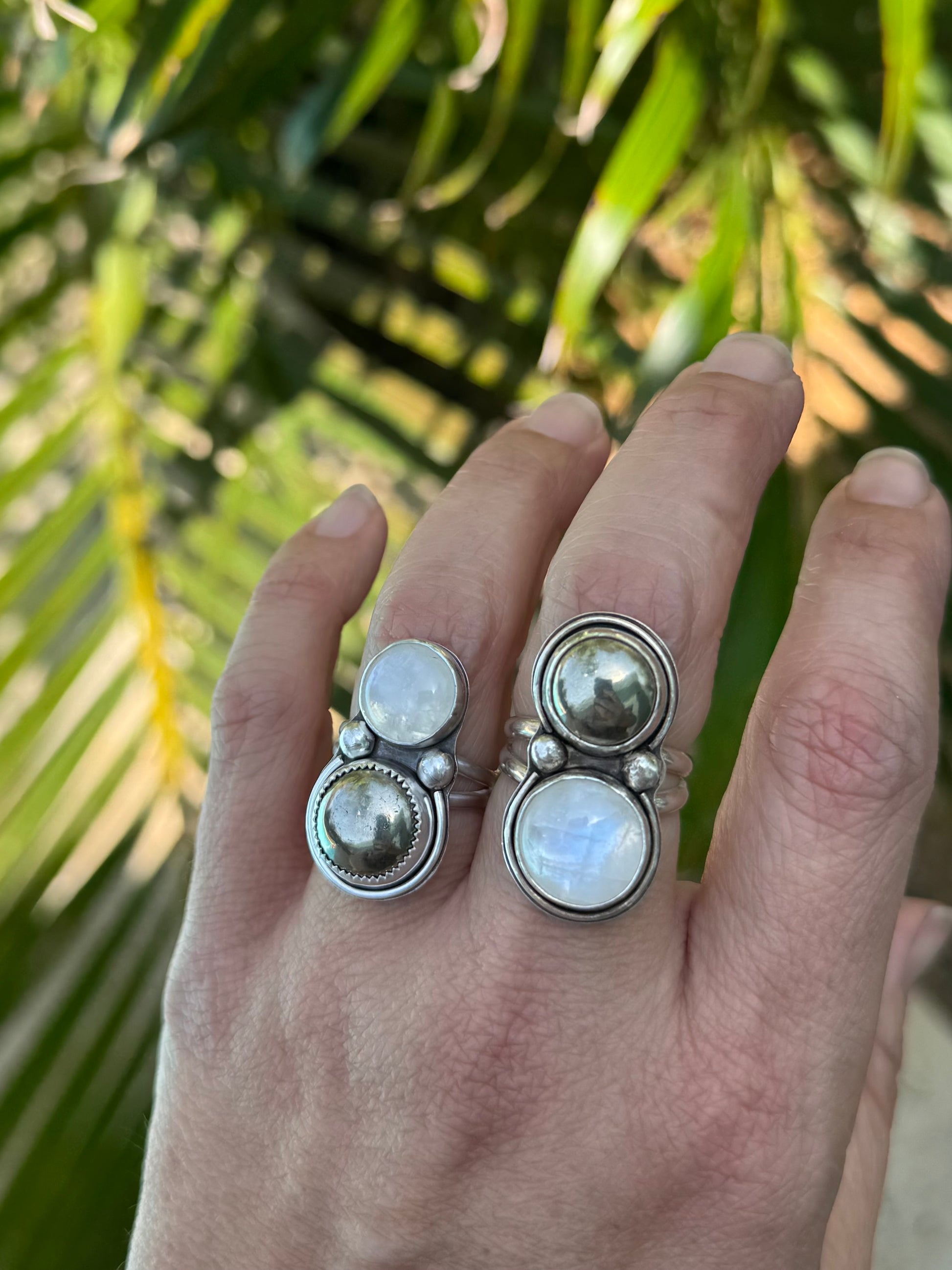 B - Moon on top, Pyrite on bottom (size 7.25)