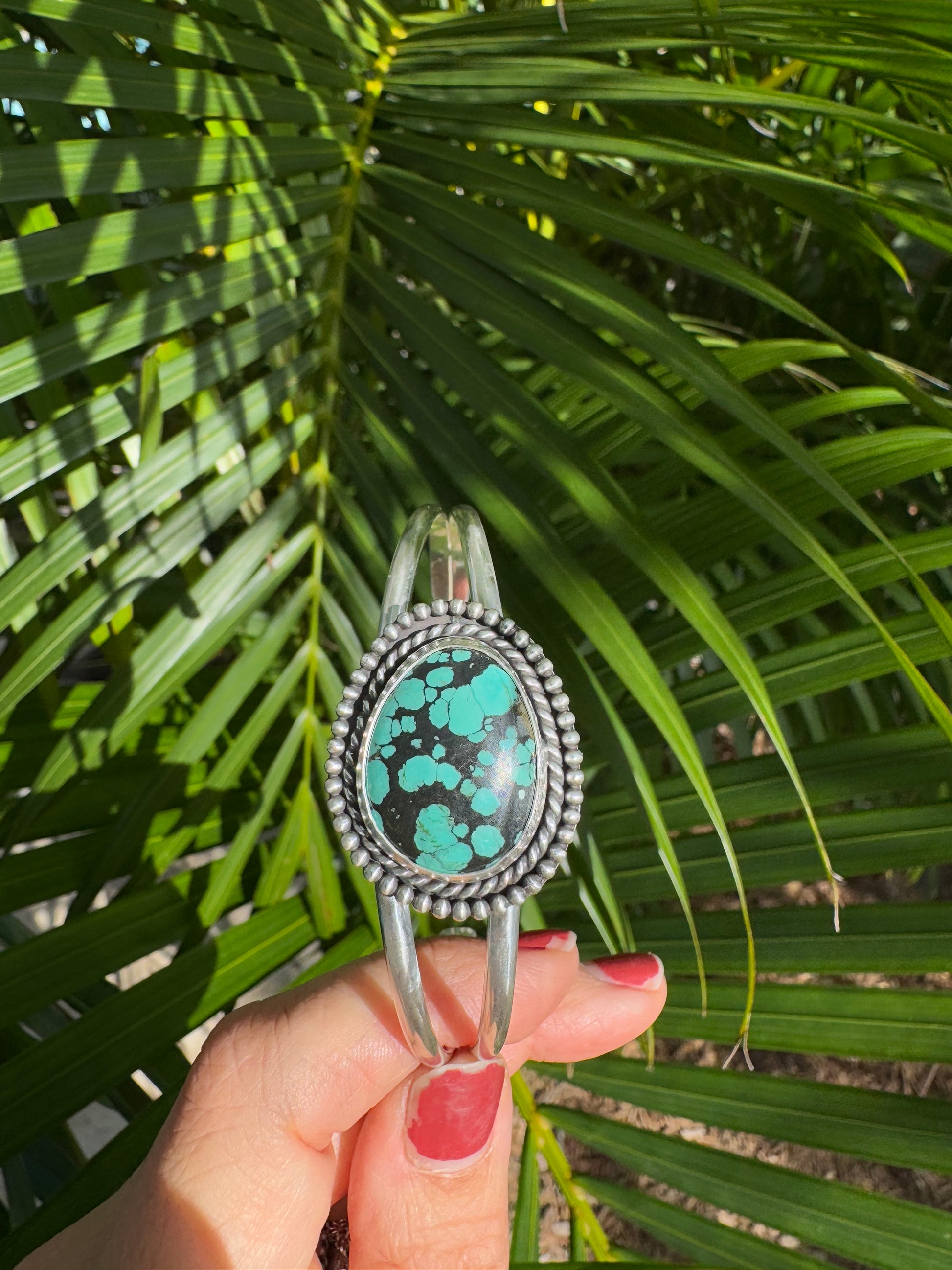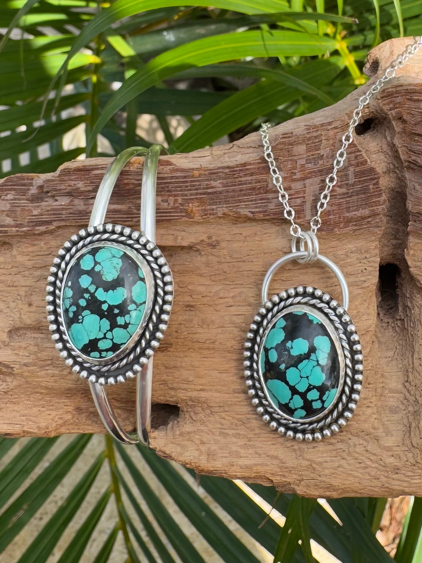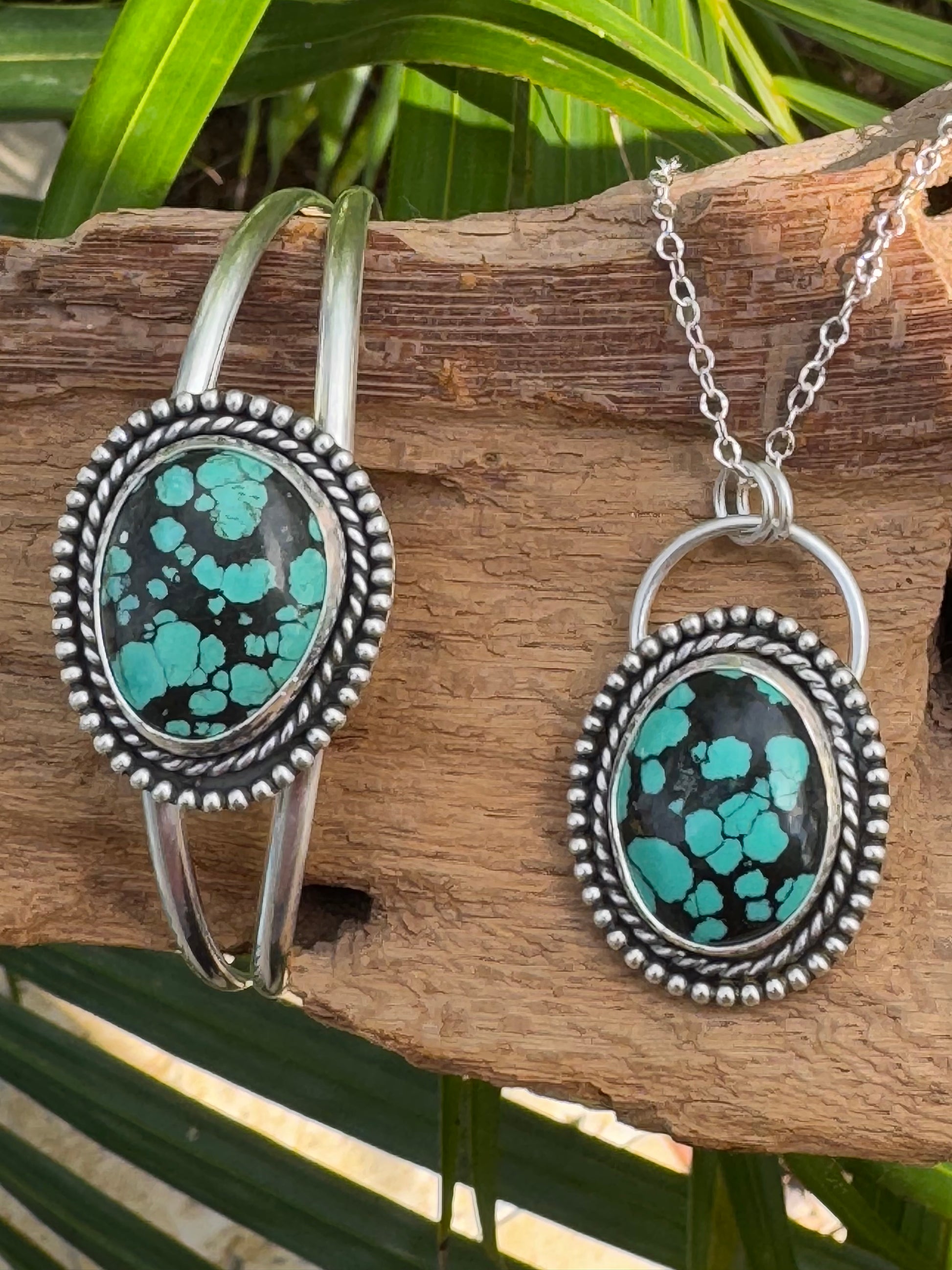 Gorgeous Tibetan Turquoise accented in beaded and twisted wire makeup this stunning custom cuff & necklace set!