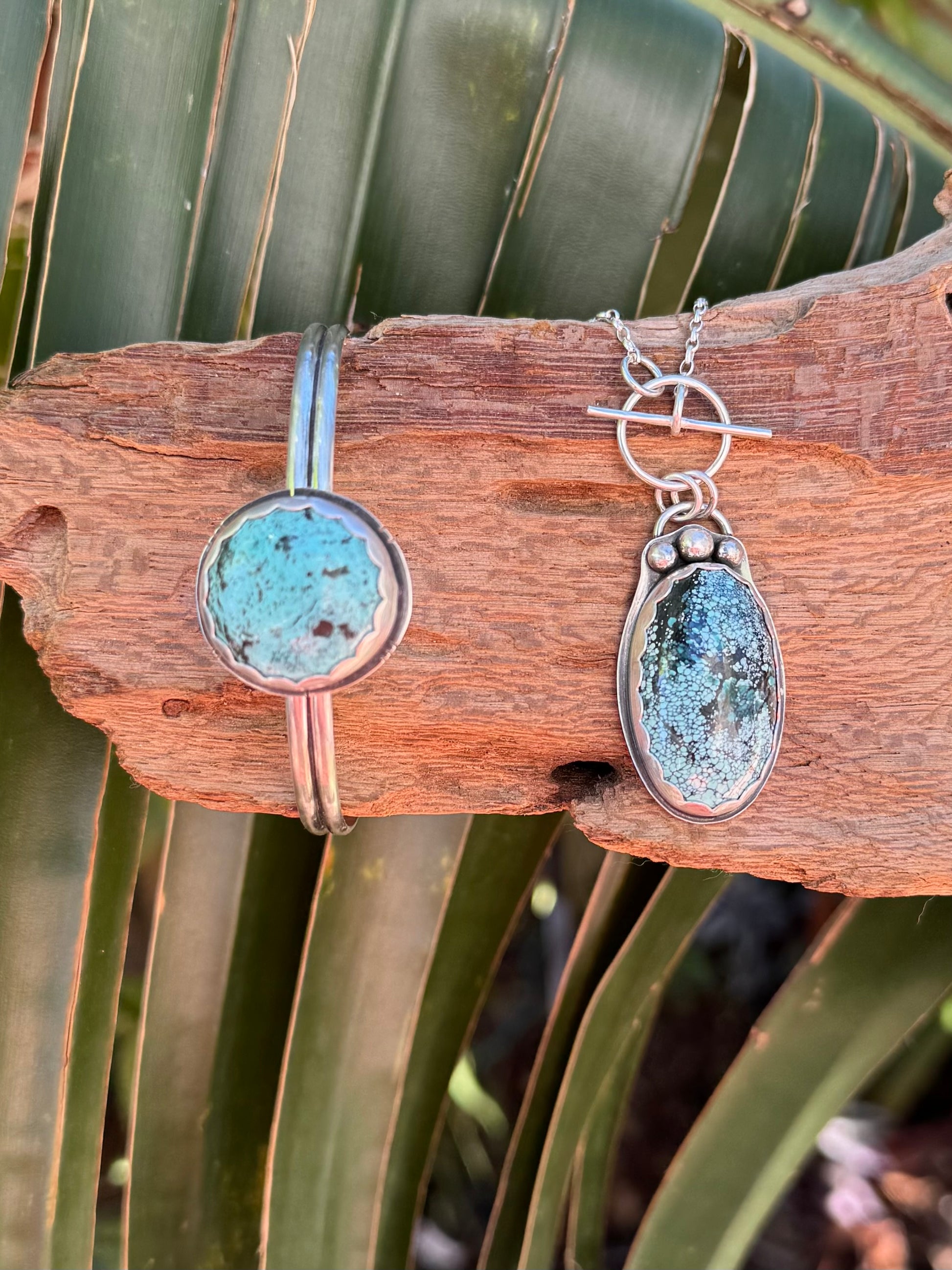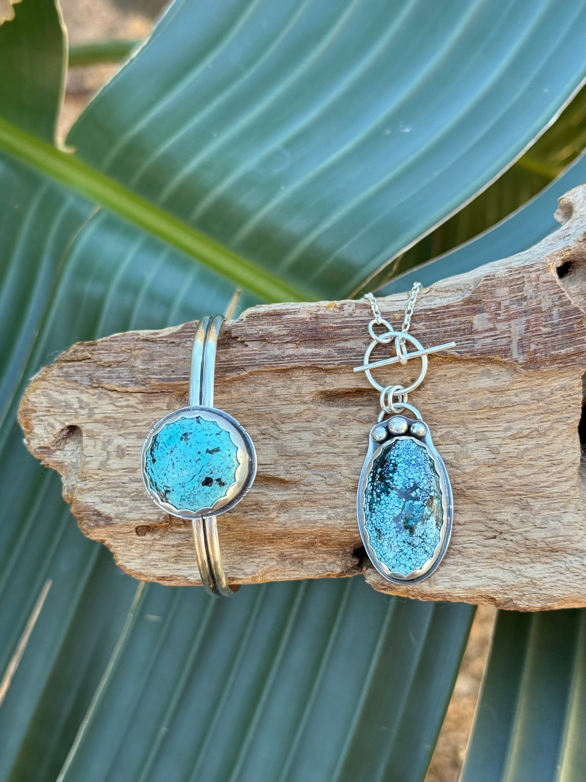 Oh la la la matching turquoise cuff & necklace in a sweet satin finish with delicate embellishments.